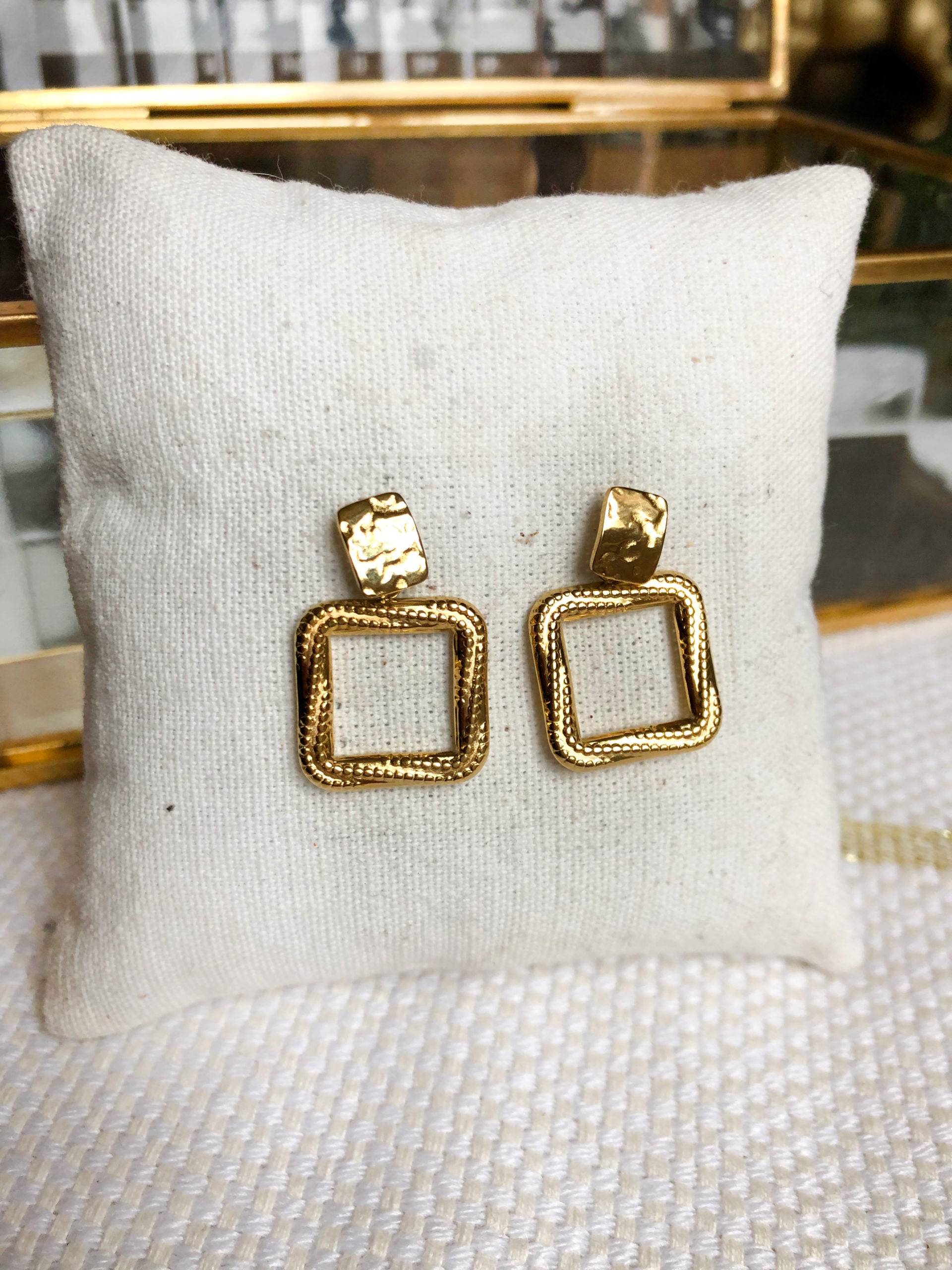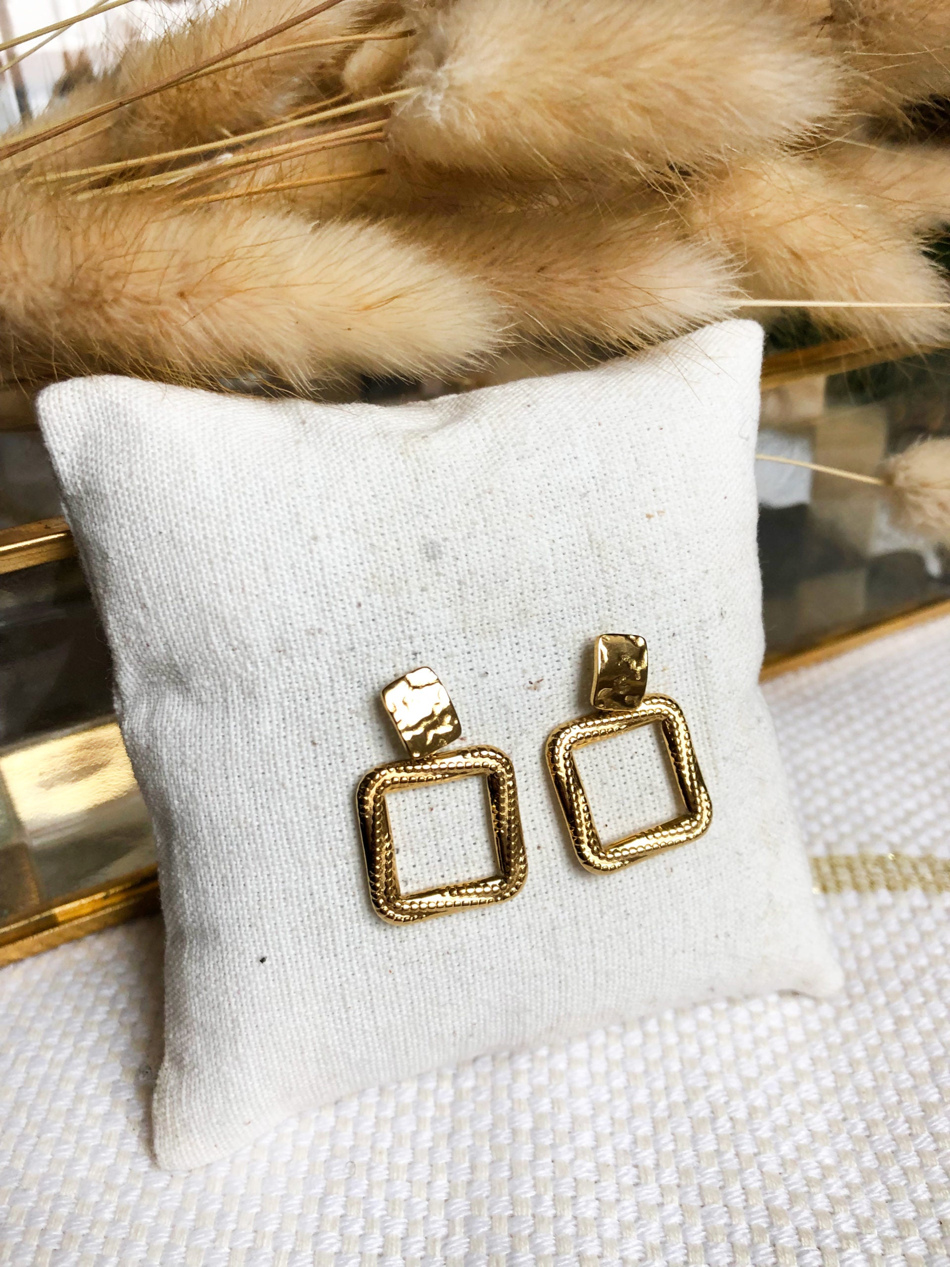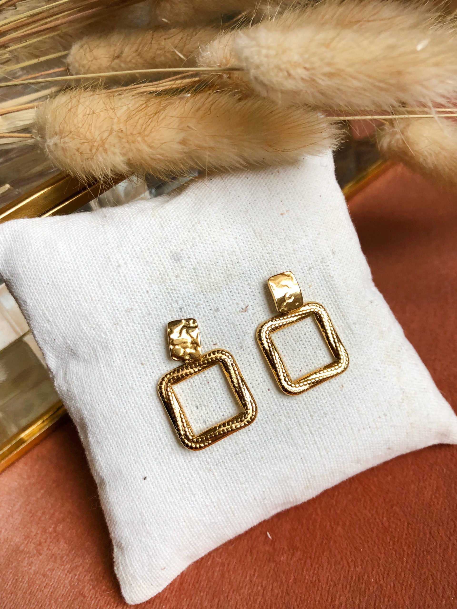 NINA, les boucles d'oreilles à forme carré avec joli effet martelé