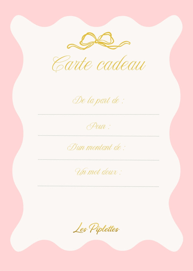 Vous cherchez le cadeau parfait sans risquer de vous tromper ? Offrez la liberté de choisir avec la carte cadeau digitale Les Piplettes !