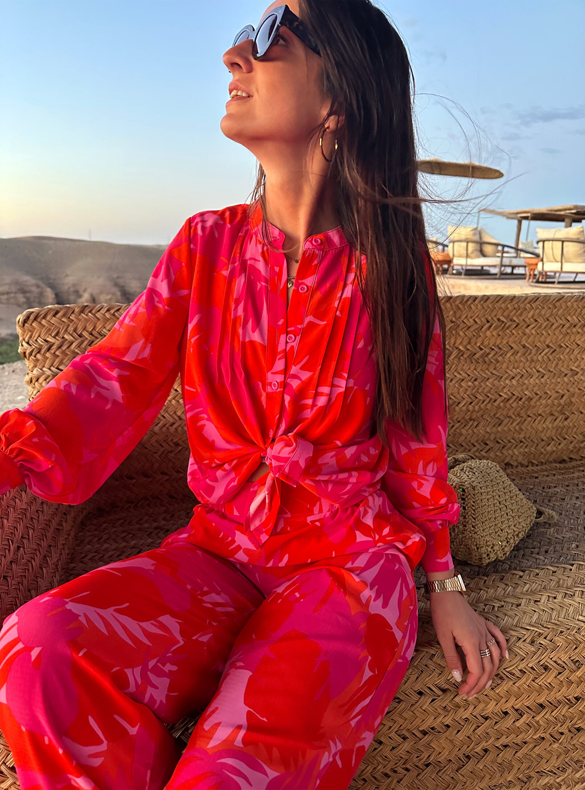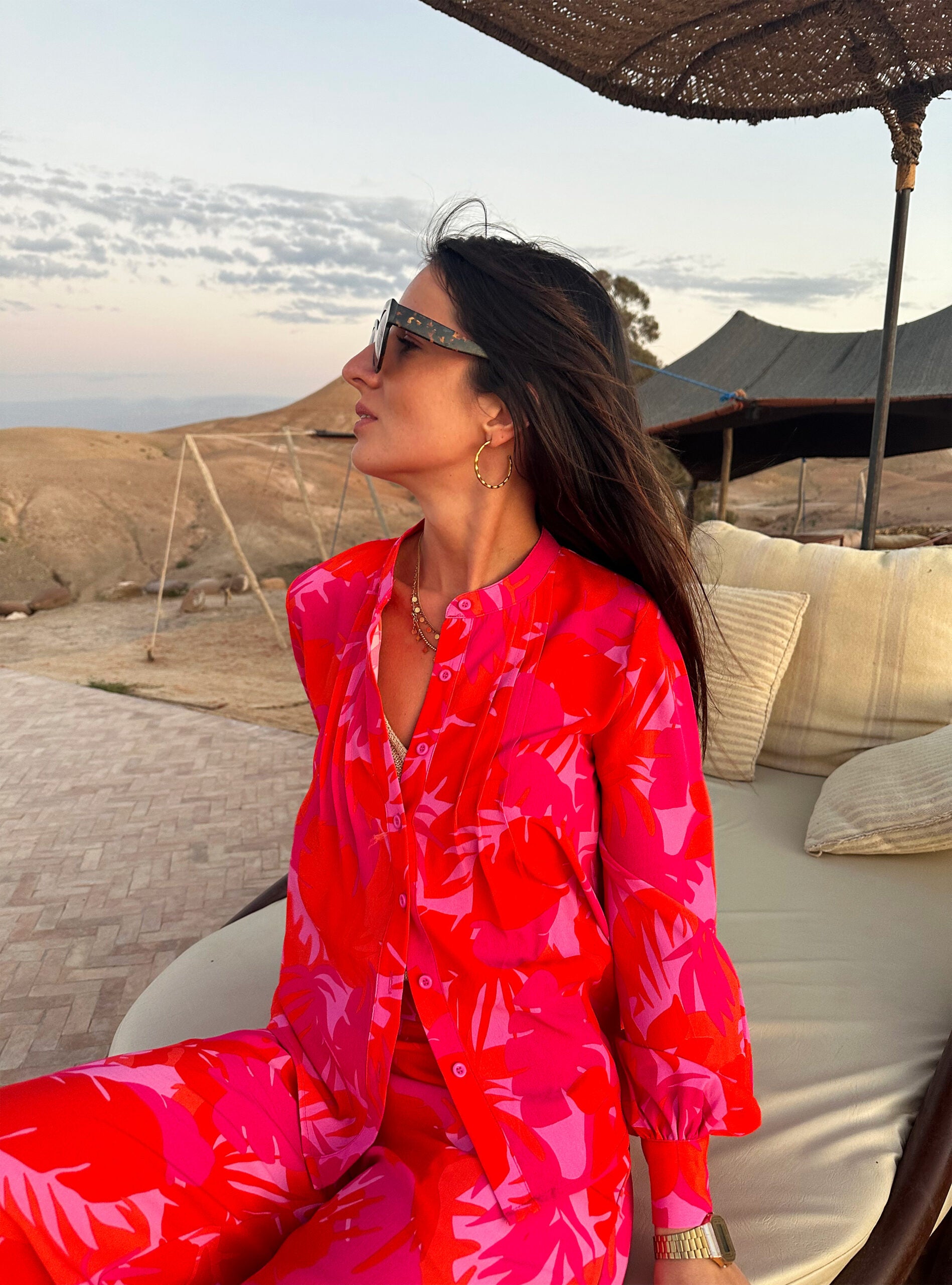 Voici notre nouvelle chemise Palmyre ultra colorée et tendance ! On adore son imprimé feuilles de palmier et ses jolies couleurs !
