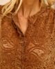 Son tissu doux et raffiné dévoile un délicat motif ajouré au style paisley, parfait pour la saison automnale.