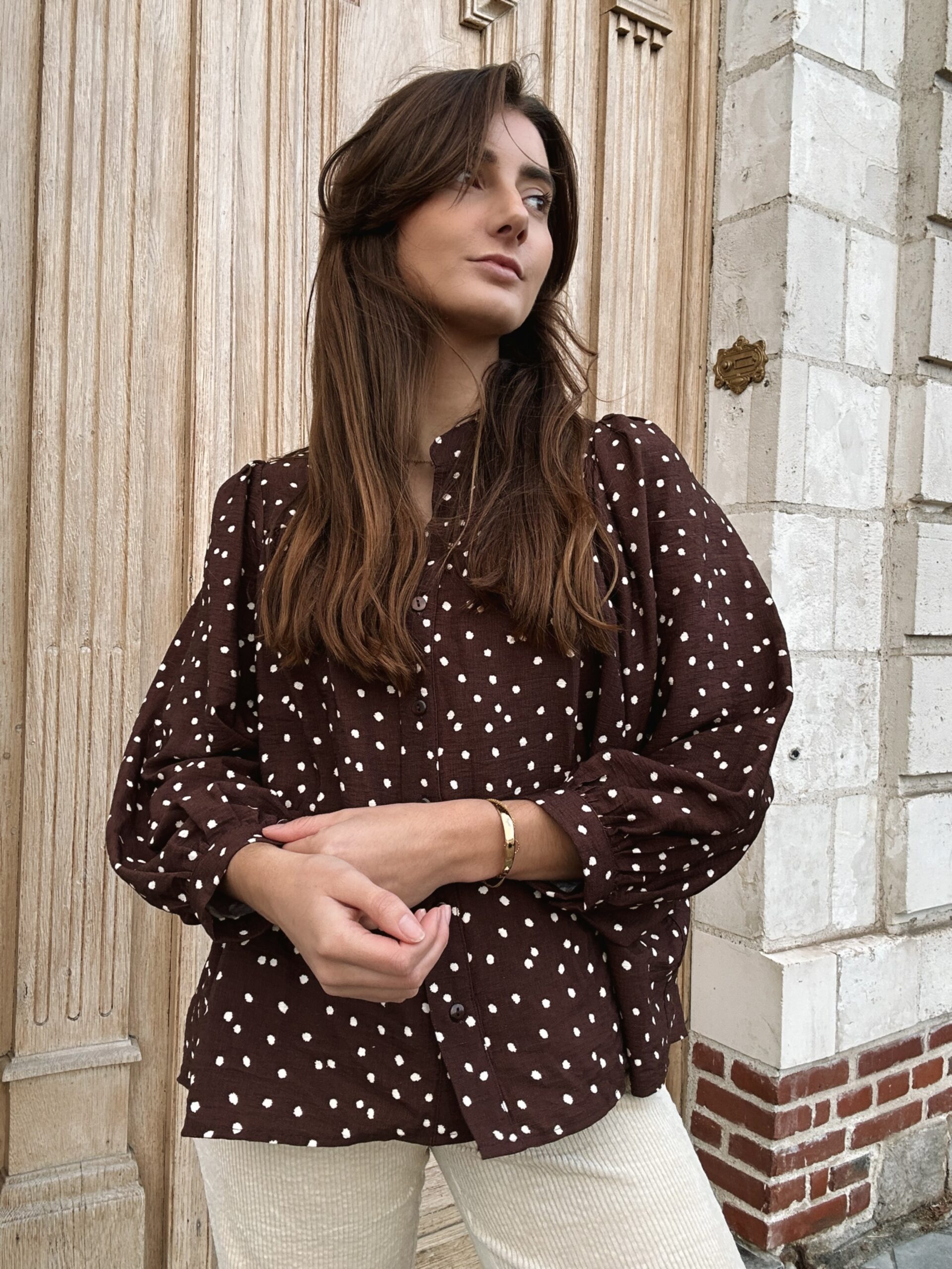 Craquez pour la blouse Cassandre à imprimé polka dots, ce motif indémodable et ultra tendance qui traverse les époques sans perdre en élégance. C’est la pièce qui sublime vos looks en toute saison !