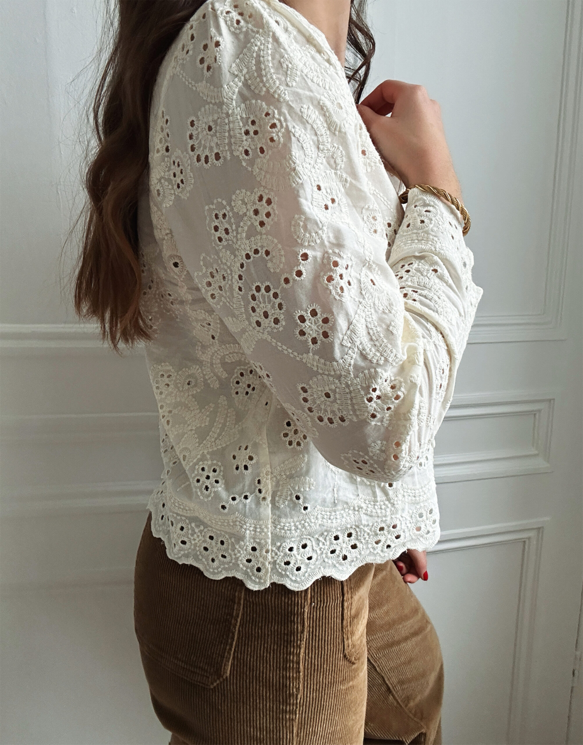 Impossible de résister à Hortense, cette blouse ivoire en broderie anglaise est un véritable coup de coeur. Féminine, elle habille la silhouette avec élégance !