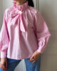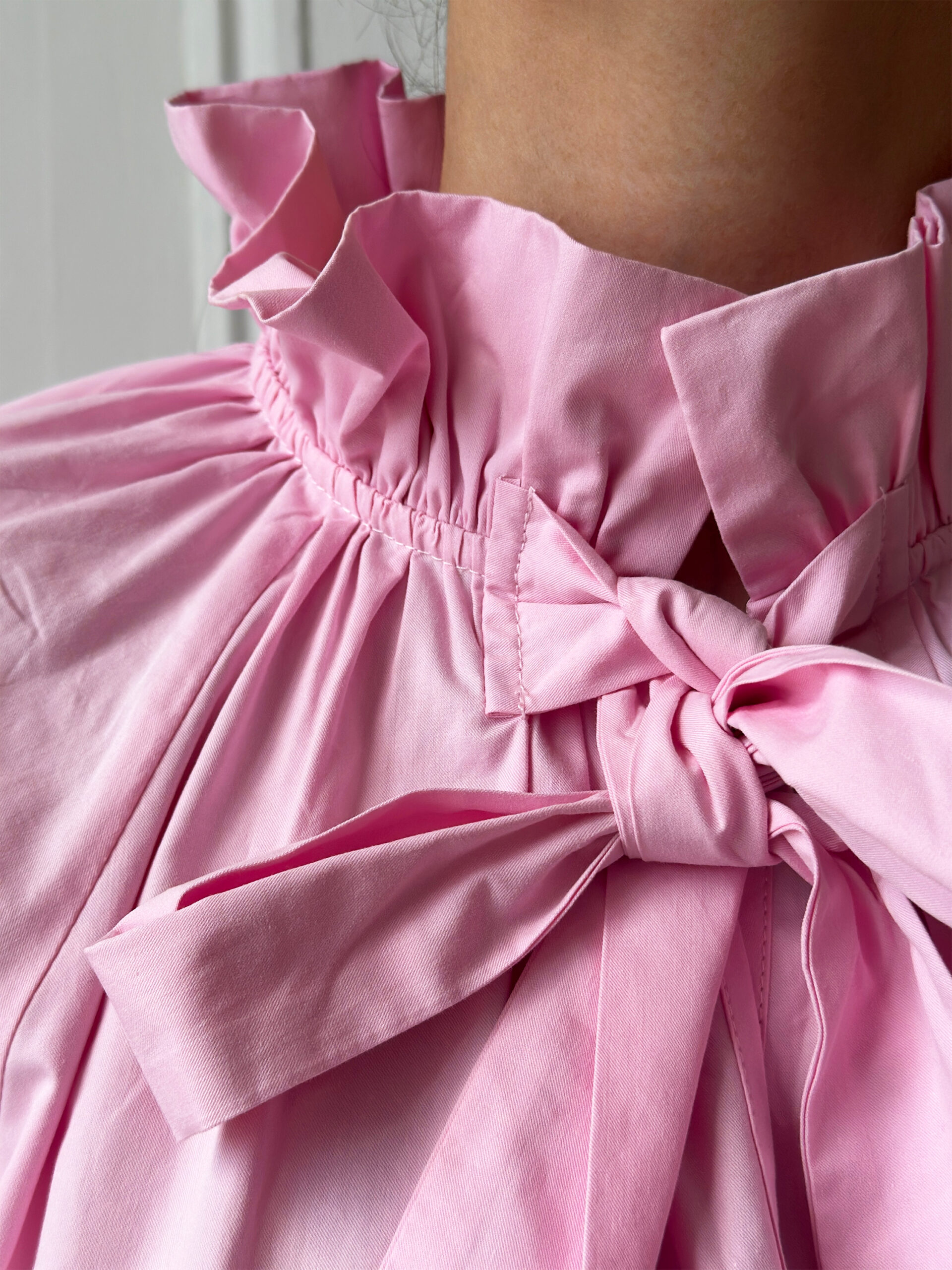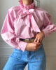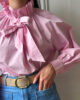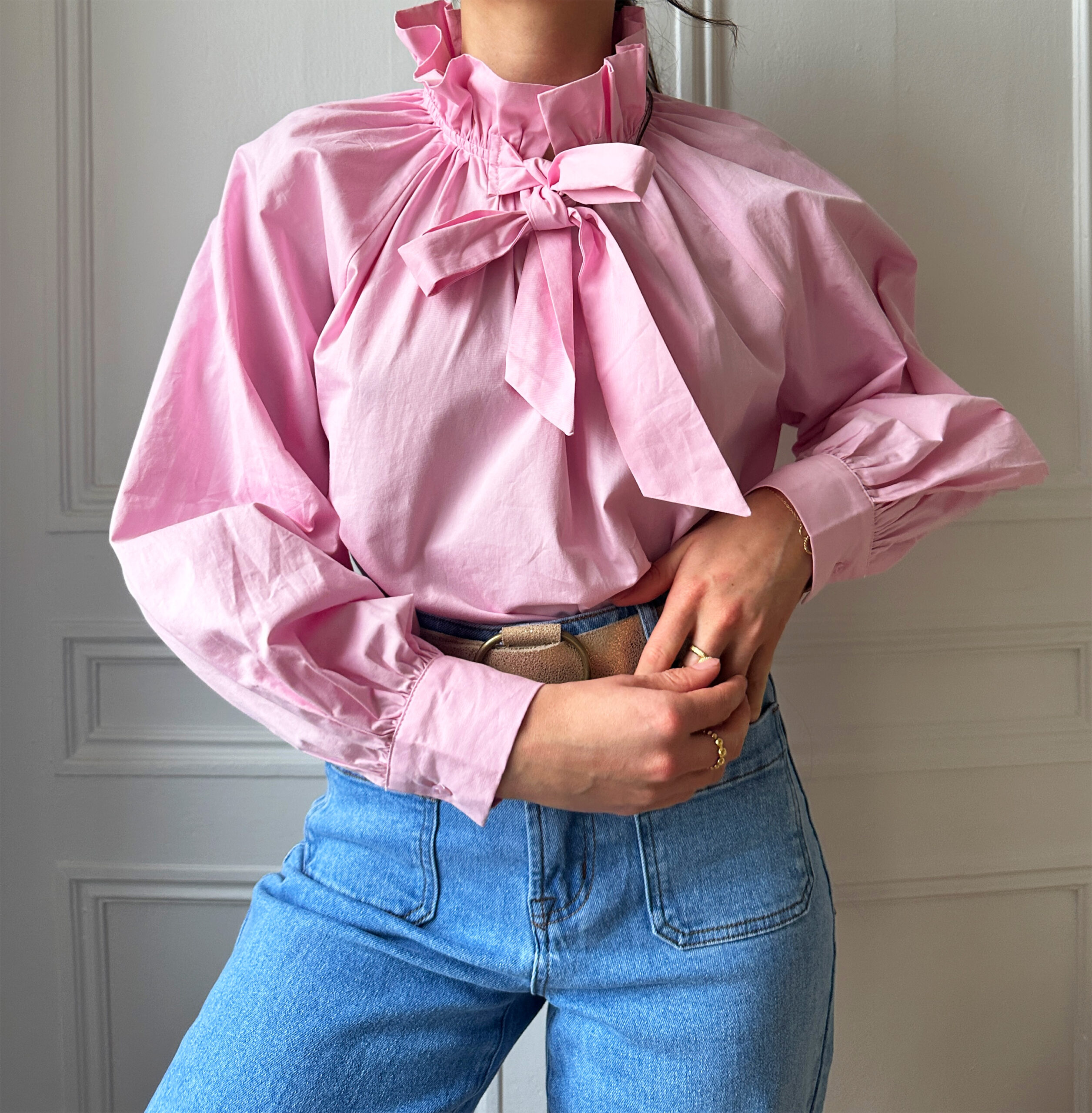 Craquez pour Paloma, la blouse en coton au rose délicat et au noeud signature, qui apporte une touche féminine à toutes vos tenues.