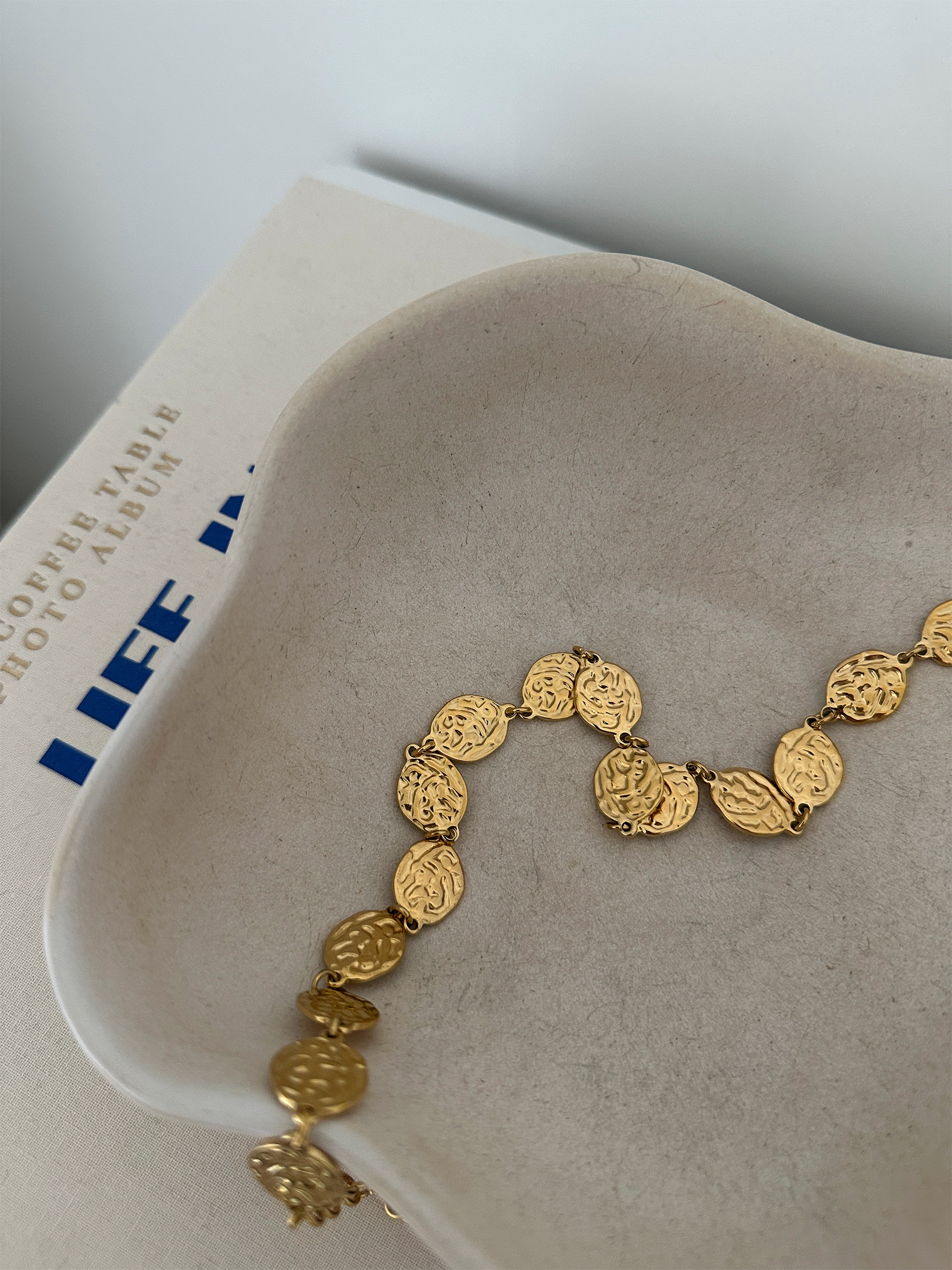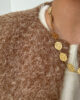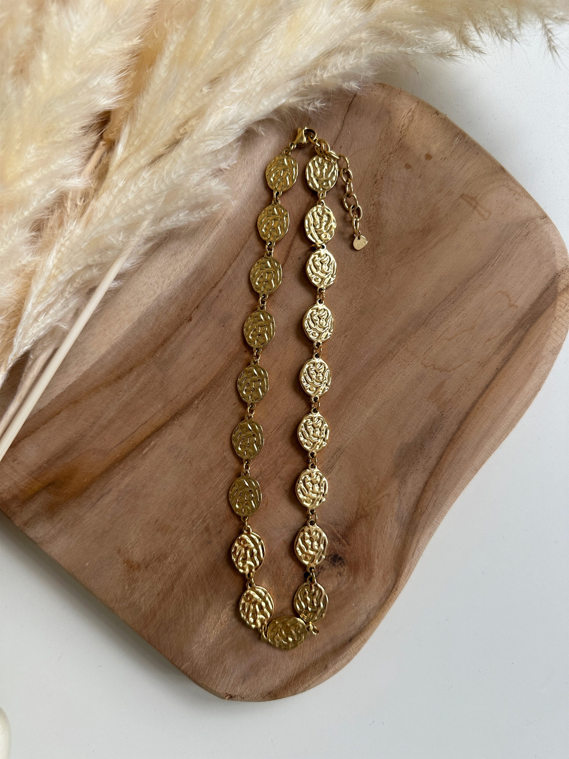 Le collier Kaellis est le bijou qui mixe élégance et caractère ! Avec ses maillons ronds finement ciselés en acier inoxydable doré, il attire la lumière et apporte une touche sophistiquée et originale à toutes vos tenues.