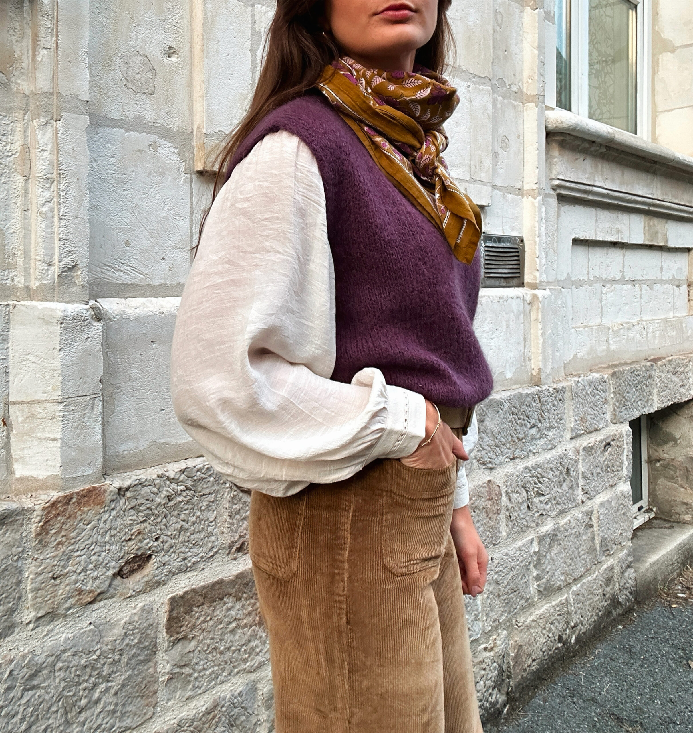- Modèle sans manches à porter en superposition au dessus d’une jolie blouse